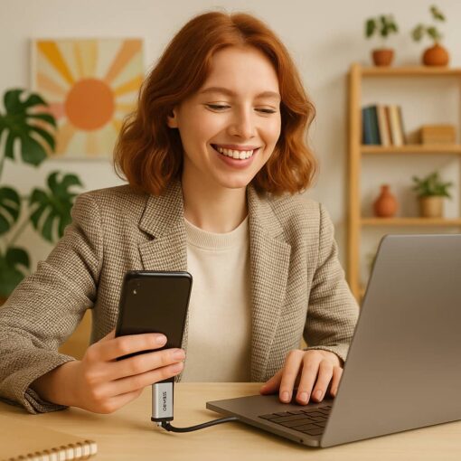 یکی از نقاط قوت این مبدل OTG، پشتیبانی از USB 3.0 است که سرعت انتقال دادهها را به طور قابل توجهی افزایش میدهد. با استفاده از این مبدل، میتوانید فایلهای حجیم مانند ویدیوها و پروژههای کاری را در کمترین زمان ممکن منتقل کنید. همچنین این ابزار با تمامی دستگاههای دارای پورت Type-C سازگار است، بنابراین بدون نگرانی از عدم سازگاری، میتوانید از آن در گوشیها، تبلتها یا لپتاپهای خود استفاده کنید.