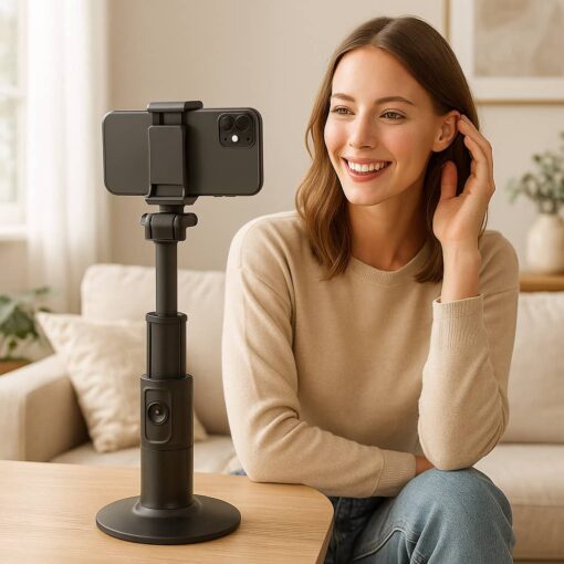 یکی از قابلیتهای برجسته این مونوپاد، توانایی چرخش ۳۶۰ درجهای آن است. این چرخش کامل به دستگاه اجازه میدهد تا به طور پیوسته به دور خود بچرخد و هیچ زاویهای را از دست ندهد. این ویژگی با سیستم هوشمند تشخیص چهره ترکیب شده است؛ به این معنی که مونوپاد میتواند چهره فرد مورد نظر را شناسایی کرده و با چرخش خودکار، او را همیشه در مرکز کادر نگه دارد. این قابلیت برای ضبط ویدئوهای آموزشی که در آنها حرکت میکنید، ولاگهای پویا، تماسهای تصویری یا حتی ضبط جلسات آنلاین که نیاز به آزادی حرکت دارید، فوقالعاده کاربردی و موثر است.