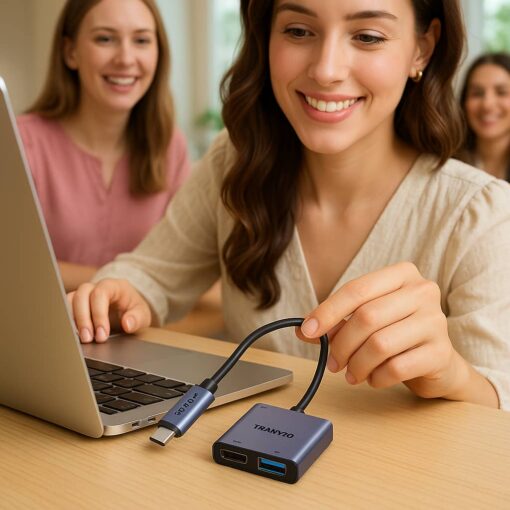 یکی از ویژگیهای برجسته این هاب، وجود پورت خروجی HDMI است که امکان اتصال دستگاه شما را به نمایشگرهای بزرگتر، تلویزیونها و پروژکتورها با رزولوشن خیرهکننده 4K فراهم میکند. این قابلیت برای ارائهها، تماشای فیلم با کیفیت بالا یا استفاده از مانیتور دوم برای افزایش فضای کاری بسیار کاربردی است و تجربه بصری بینظیری را ارائه میدهد. علاوه بر این، یک پورت خروجی USB Type-C با پشتیبانی از قابلیت Power Delivery (PD) تا توان 100 وات در این هاب تعبیه شده است. این پورت نه تنها امکان شارژ سریع لپتاپ یا تبلت شما را در حین استفاده از هاب فراهم میکند، بلکه میتواند برای انتقال داده نیز مورد استفاده قرار گیرد، که این خود یک مزیت بزرگ به شمار میرود.