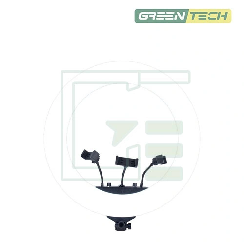 قطر ۲۲ اینچ (۵۶ سانتیمتر) این رینگ لایت، نور وسیع و یکنواختی را برای سوژههای شما فراهم میکند. قابلیت تنظیم شدت روشنایی نیز به شما این امکان را میدهد تا نور را بر اساس نیاز محیطی خود کم یا زیاد کنید. با پایه قابل تنظیم ارتفاع، میتوانید از رینگ لایت بهصورت ایستاده یا رومیزی استفاده کنید. هولدر گیرهای برای گوشی هوشمند نیز به شما کمک میکند تا به راحتی گوشی خود را روی این هولدر نصب کرده و زاویه دید دلخواهتان را تنظیم کنید.