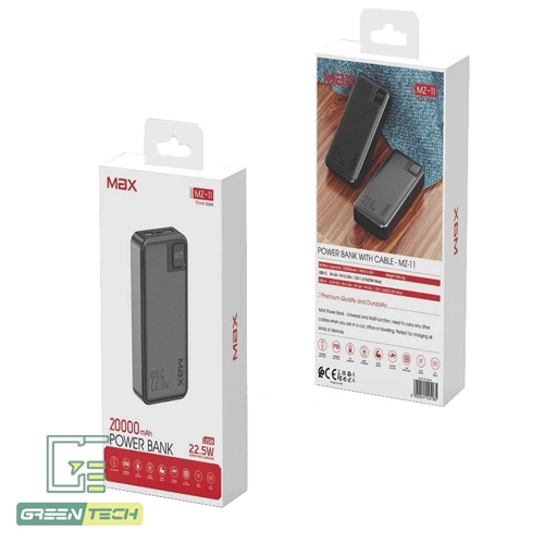 پاوربانک 20000 میلیآمپر مدل MZ-11 یکی از محصولات کاربردی و قدرتمند برند MAX چین است برای افرادی که نیاز به شارژ سریع و مطمئن دستگاههای خود دارند. این محصول با ظرفیت بالای 20000 میلیآمپر، امکان شارژ چندین بار دستگاه هایی مثل گوشی موبایل، تبلت، و حتی برخی لپتاپ ها را فراهم میکند. یکی از نقاط قوت این پاور بانک فوق سریع، پشتیبانی از پروتکل های شارژ سریع PD(Power Delivery) و (Quick charge)QC است که باعث افزایش سرعت شارژ دستگاه ها میشود. همچنین طراحی دو درگاه خروجی USB و Type-C به شما اجازه میدهد چند دستگاه را به طور همزمان شارژ کنید.