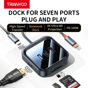 هاب TRANYOO مدل HB7-C با پورت های متنوع و قابلیت های پیشرفته ای که دارد، یک مرکز اتصال همه کاره برای شماست. این هاب نه تنها به شما کمک می کند تا دستگاه های بیشتری را به هم وصل کنید، بلکه انتقال داده و شارژ را هم با سرعت بالا و کارایی فوق العاده انجام می دهد.