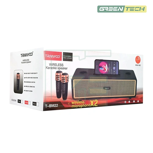طراحی ظاهری اسپیکر BM22 نیز نقطه قوت آن محسوب میشود. بدنه این اسپیکر خیلی کوچک از متریال ABS باکیفیت به همراه ترکیب چرم و چوب ساخته شده است که جلوهای فوقالعاده شیک و لوکس به آن بخشیده و به راحتی با دکوراسیونهای مختلف سازگار میشود. با ابعاد 42x17x14 سانتیمتر و وزن مناسب، این اسپیکر سبک و قابل حمل است و میتوانید آن را به راحتی با خود به هر کجا ببرید. باتری داخلی 3000 میلیآمپر ساعتی این اسپیکر بلوتوثی کارائوکه، امکان پخش مداوم موسیقی را برای 3 تا 6 ساعت فراهم میکند و شارژ کامل آن تنها 5 ساعت زمان میبرد. اسپیکر ترانیو BM22 یک پیشنهاد ویژه برای افراد خاص و با سلیقههای عالی است که به دنبال ترکیبی از عملکرد قوی، زیبایی بصری و قابلیتهای سرگرمکننده هستند.