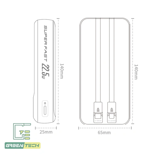 یکی از برجستهترین ویژگی های این پاوربانک، قابلیت شارژ سریع با توان 22.5 وات است. این ویژگی به شما امکان می دهد تا گوشی های سازگار خود را در مدت زمان کوتاهی به میزان قابل توجهی شارژ کنید. برای مثال، می توانید در مدت زمان کمی شارژ گوشی خود را از صفر به پنجاه درصد برسانید. این قابلیت برای مواقعی که عجله دارید یا نیاز به شارژ فوری دستگاه های پرمصرف دارید، بسیار مفید است.