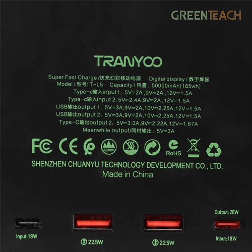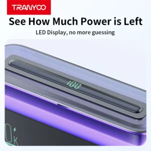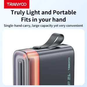 طراحی پاوربانک T-L5 ترکیبی از زیبایی و مقاومت است. بدنه این محصول از جنس ABS ضد اشتعال ساخته شده که در برابر ضربه، حرارت و خط و خش مقاوم است. این پاوربانک TRANYOO با نورپردازی RGB جذاب، علاوه بر کارایی، جلوهای مدرن و زیبا به خود داده است.