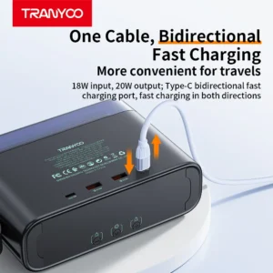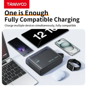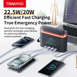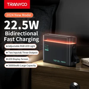 پاوربانک 50000 میلی آمپر T-L5 ترانیو، یک گزینه ایدهآل برای کسانی است که به دنبال یک شارژر همراه قدرتمند و بادوام هستند. ظرفیت بالا و فناوری شارژ سریع این محصول، آن را به یکی از بهترین انتخابها برای کاربران حرفهای تبدیل کرده است. با توان 22.5 وات، این پاوربانک قادر است دستگاههای شما را در مدت زمان کوتاهی شارژ کند، که به ویژه برای کاربران پرمشغله یا کسانی که در سفر هستند، بسیار مناسب است.