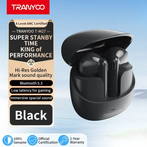 ایرپاد TRANYOO T-M27 با قابلیت کنترل لمسی ارائه میشود که به شما اجازه میدهد به راحتی موسیقی را کنترل کنید، تماسها را پاسخ دهید یا دستیار صوتی را فعال کنید. این کنترلها بسیار شهودی و کاربرپسند هستند. علاوه بر این، این هندزفری بیسیم با تمام دستگاههای دارای سیستم عامل اندروید و iOS سازگاری کامل دارد، بنابراین فرقی نمیکند از چه گوشی یا تبلتی استفاده میکنید، به راحتی میتوانید آن را به دستگاه خود متصل کنید.