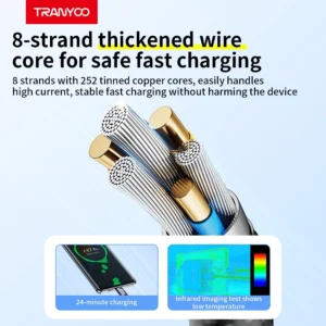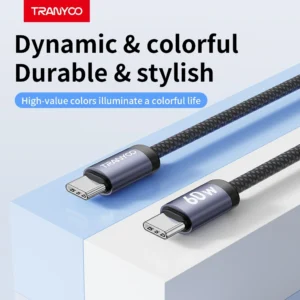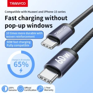 کابل تایپ سی به تایپ سی ترانیو مدل T-P21 در اغلب سریهای اصلی خودش، تا ۶۰ وات (20V/3A) شارژ سریع را پشتیبانی میکند.
