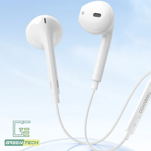 هندزفری سیمی ترانیو R12 با طراحی مدرن و مینیمال خود، ظاهری جذاب و کاربرپسند دارد. بدنه این هندزفری از پلاستیک مقاوم و با دوام ساخته شده که در برابر استفاده طولانی مدت و ضربه های احتمالی، مقاومت خوبی از خود نشان می دهد. گوشی های این هدفون سیمی با زاویه 45 درجه و به صورت ارگونومیک طراحی شده اند تا به راحتی و بدون فشار در گوش قرار بگیرند. این طراحی هوشمندانه باعث می شود حتی پس از ساعت ها استفاده، احساس خستگی نکنید و نگران افتادن هندزفری از گوش خود نباشید.