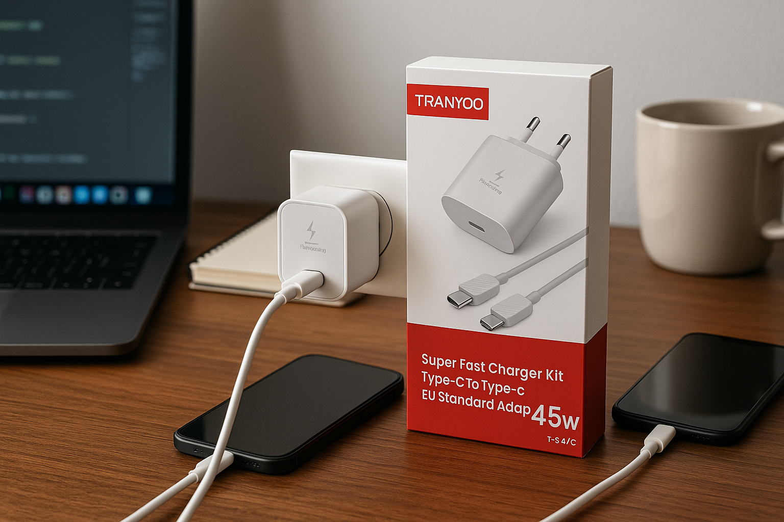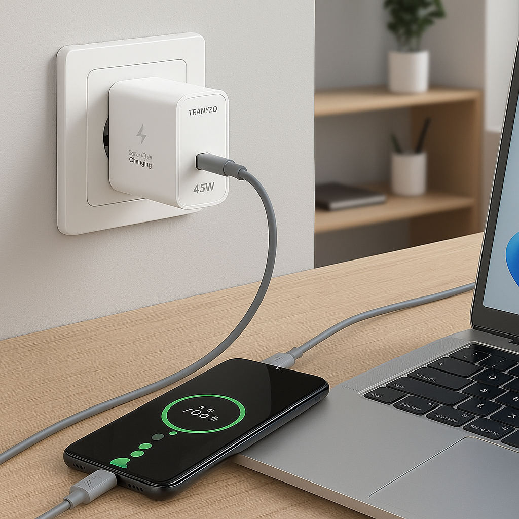 شارژر 45 وات ترانیو T-SA7C با کابل Type-C: سرعت، ایمنی و کارایی در ابعادی کوچک