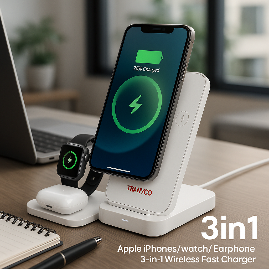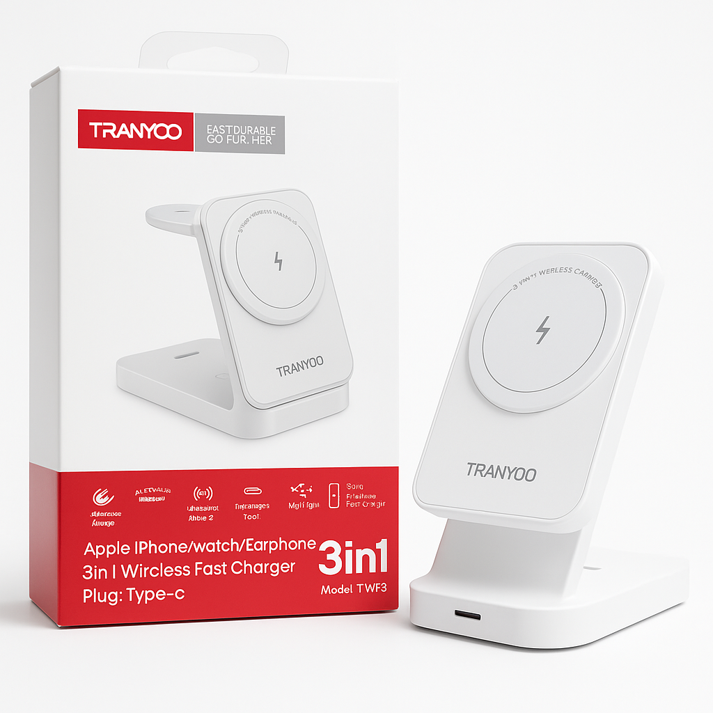 مهم ترین مزیت شارژر وایرلس 3 در 1 ترانیو T-WF3، امکان شارژ همزمان گوشی هوشمند، ساعت هوشمند و ایرپاد شما با یک دستگاه است. این ویژگی باعث می شود که دیگر نیازی به استفاده از چندین کابل و آداپتور جداگانه نداشته باشید و فضای روی میز یا کنار تخت شما همیشه مرتب و خلوت بماند. این شارژر بی سیم تاشو، یک راه حل جامع برای تمامی نیازهای شارژ روزانه شماست و از شلوغی و بهم ریختگی جلوگیری می کند.