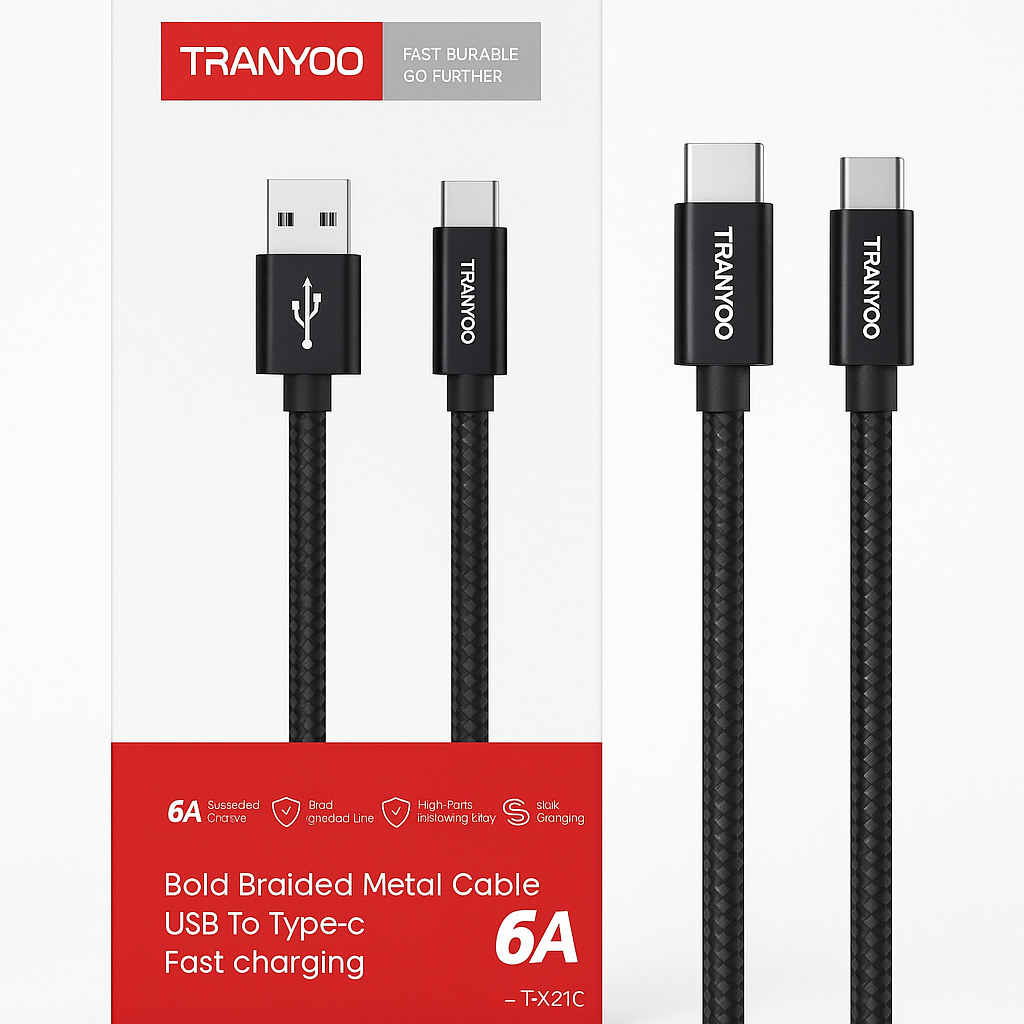 کابل شارژ ترانیو Type C مدل TRANYOO T-X21 یک انتخاب برجسته برای کسانی است که به دنبال کارایی و پایداری در شارژر دستگاه های خود هستند. این کابل با پشتیبانی از حداکثر شدت جریان 6 آمپر، قابلیت شارژ سریع را برای دستگاه های شما فراهم میکند. این یعنی می توانید گوشی یا تبلت خود را در زمان کمی شارژ کنید و برای ادامه فعالیت هایتان آماده باشید.